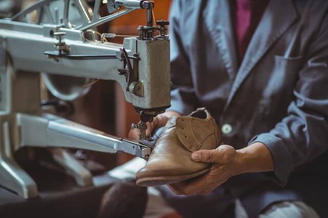 shoe lasts hanging on the wall in the workshop